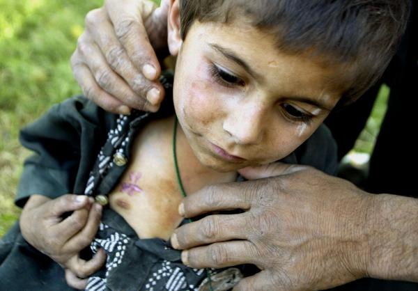 Ghulam muestra las cicatrices de las heridas de metralla recibidas durante el bombardeo estadounidense de una boda en Kakarak en julio de 2002 que dejó a 25 muertos. Foto: AP