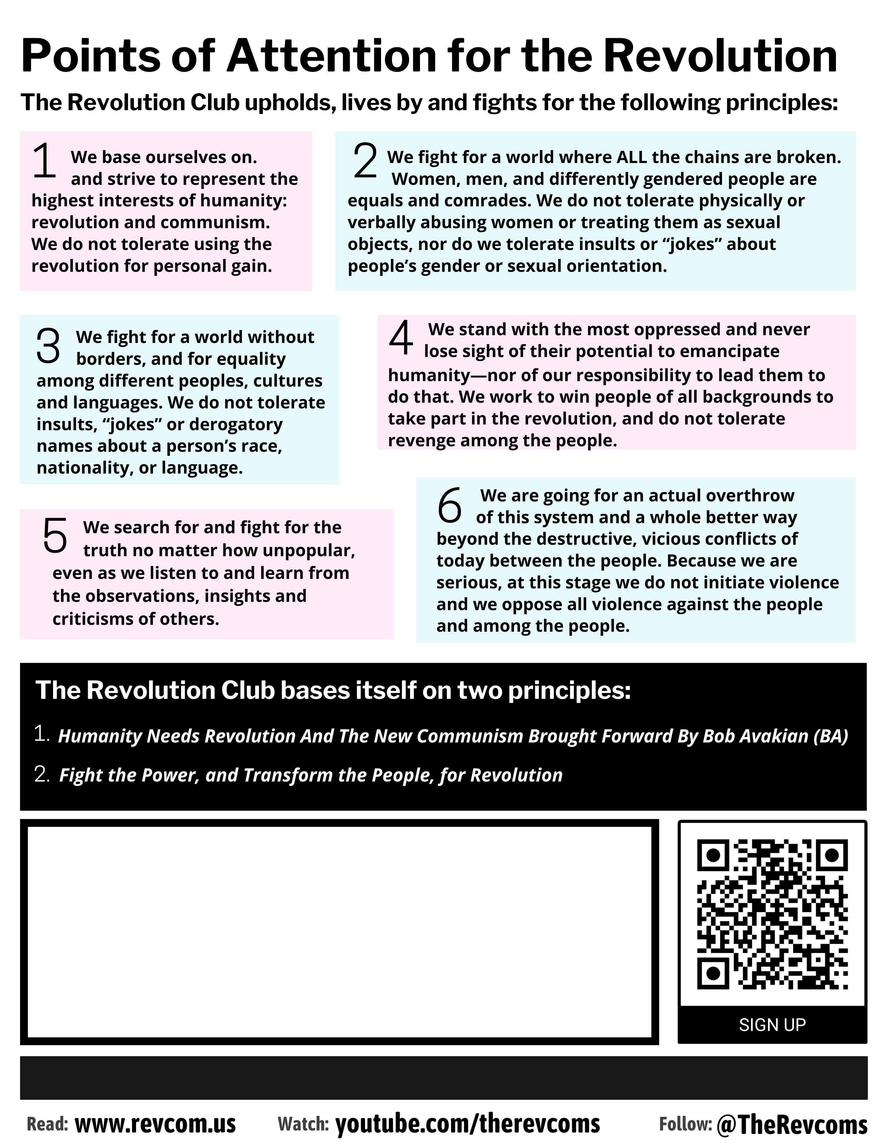 4. This week, pick a time and place and invite people to get together to discuss this situation and make plans. Read the Call for March 8 and discuss it together. To hear more from the revcoms, play this segment from The RNL – Revolution Nothing Less!– Show. Brainstorm: How are you going to stir things up in your area? How are you going to challenge the passivity among people who care but aren't paying attention?