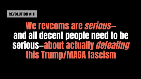[T]his is not a time for demoralization and despair. It is not a time for accepting this Trump/MAGA fascism as “legitimate,” and staying within the confines of “how things work” under this system, as Democratic Party heads and other “mainstream” ruling class representatives are urging people to do. It is not a time for turning inward and attempting to “take care of self” as the juggernaut of Trump/MAGA fascism gains momentum and crushes masses of people. This is a time for reaching out to all the others who feel the same outrage at Trump/MAGA fascism—a time for collective action and self-sacrificing struggle for the greater good: the greater good of defeating this fascism.