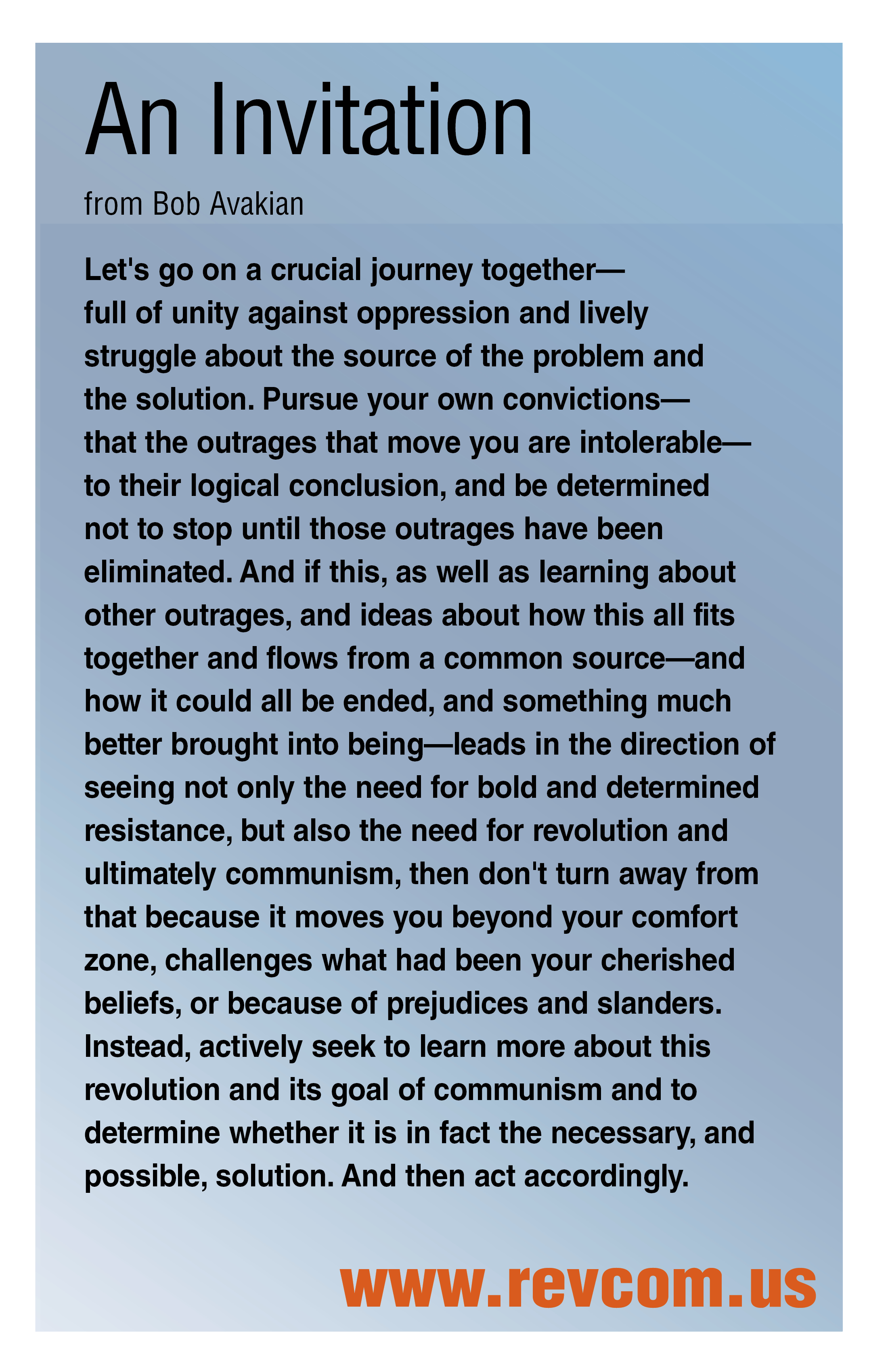 An Invitation from Bob Avakian