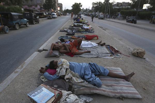 Because of relentless heat, Pakistani laborers sleep in the street.