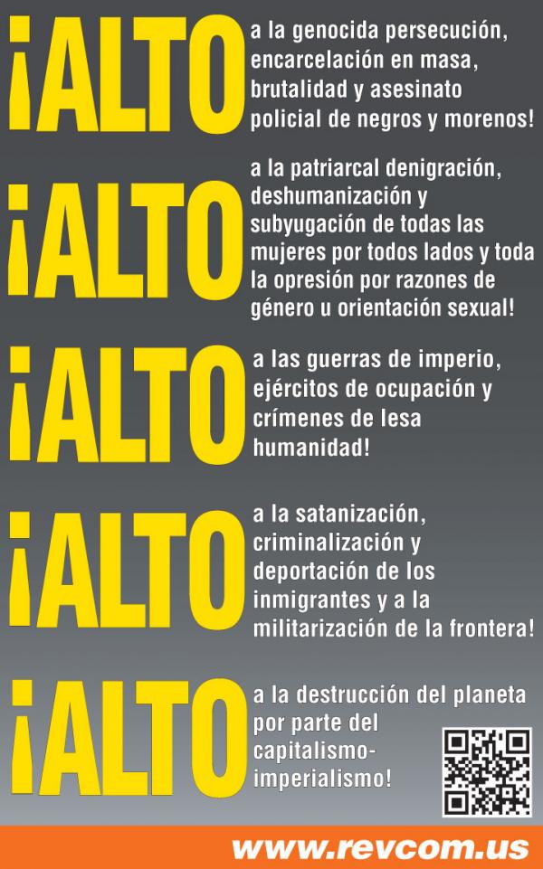 Aquellos que sufren lo peor de la vida infernal bajo el presente sistema, y aquellos que están hartos de los interminables ultrajes perpetrados por el presente sistema, tienen que conectarse con esta revolución. Es necesario que se organicen miles de personas en las filas de la revolución ahora, a la vez que se ejerza una influencia sobre millones de personas para que apoyen a esta revolución. Hemos presenciado ese potencial en las protestas que se han sostenido contra la brutalidad y asesinato policial, y otras formas en que grandes cantidades de personas se han plantado a las autoridades establecidas y a las “reglas del juego” políticas. Pero es necesario transformar lo anterior, por medio de lucha, en conciencia, determinación y organización revolucionarias. Es necesario que las fuerzas organizadas y la dirección de esta revolución lleguen a ser la “autoridad” a la que un creciente número de personas recurran y sigan — y no a los mentirosos políticos y medios de comunicación del presente sistema opresor — y no a aquellos que sirven de fachada de los opresores y predican la “conciliación” con el presente sistema — y no a aquellos que hacen que las personas se opongan las unas a las otras cuando lo que es necesario es que se unan por esta revolución. Si bien muchas personas harán cosas positivas al oponerse a los crímenes del presente sistema, es necesario que nosotros tengamos la orientación hacia todo —que evaluemos todos los programas políticos y todas las fuerzas organizadas en la sociedad, toda forma de cultura, valores y maneras de tratar a la gente— según la manera en que están relacionados con la revolución que necesitamos, para poner fin a toda opresión. Es necesario que nos unamos con la gente dondequiera que podamos y que llevemos lucha con la gente cuandoquiera que sea necesario hacerlo, a fin de hacer avanzar la revolución.