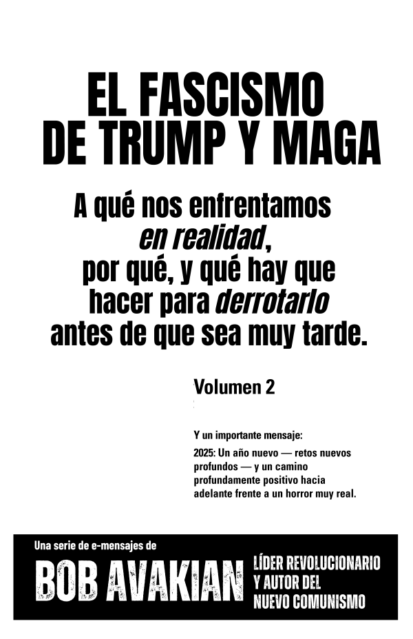 Grandes cantidades de personas se han activado en la crucial lucha contra el fascismo de Trump y MAGA. Se necesita con urgencia hacer que esta lucha sea aún más poderosa — tanto en números de personas como en impacto y efecto político, y eso requiere oponerse clara y activamente al enemigo dentro de esta lucha. - 2025: Un año nuevo — retos nuevos profundos — y un camino profundamente positivo hacia adelante frente a un horror muy real.