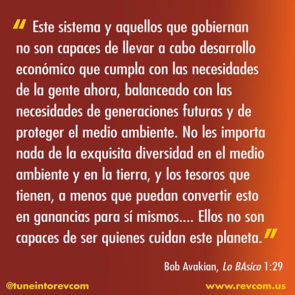 “…tenemos dos opciones: o vivir con todo eso — y condenar a las generaciones del futuro a lo mismo, o a cosas peores, si es que siquiera tengan un futuro — o, ¡hacer la revolución!”