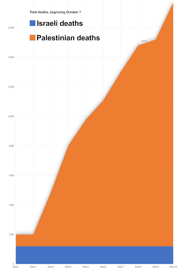 Total de muertes, desde el 7 de octubre de 2023.