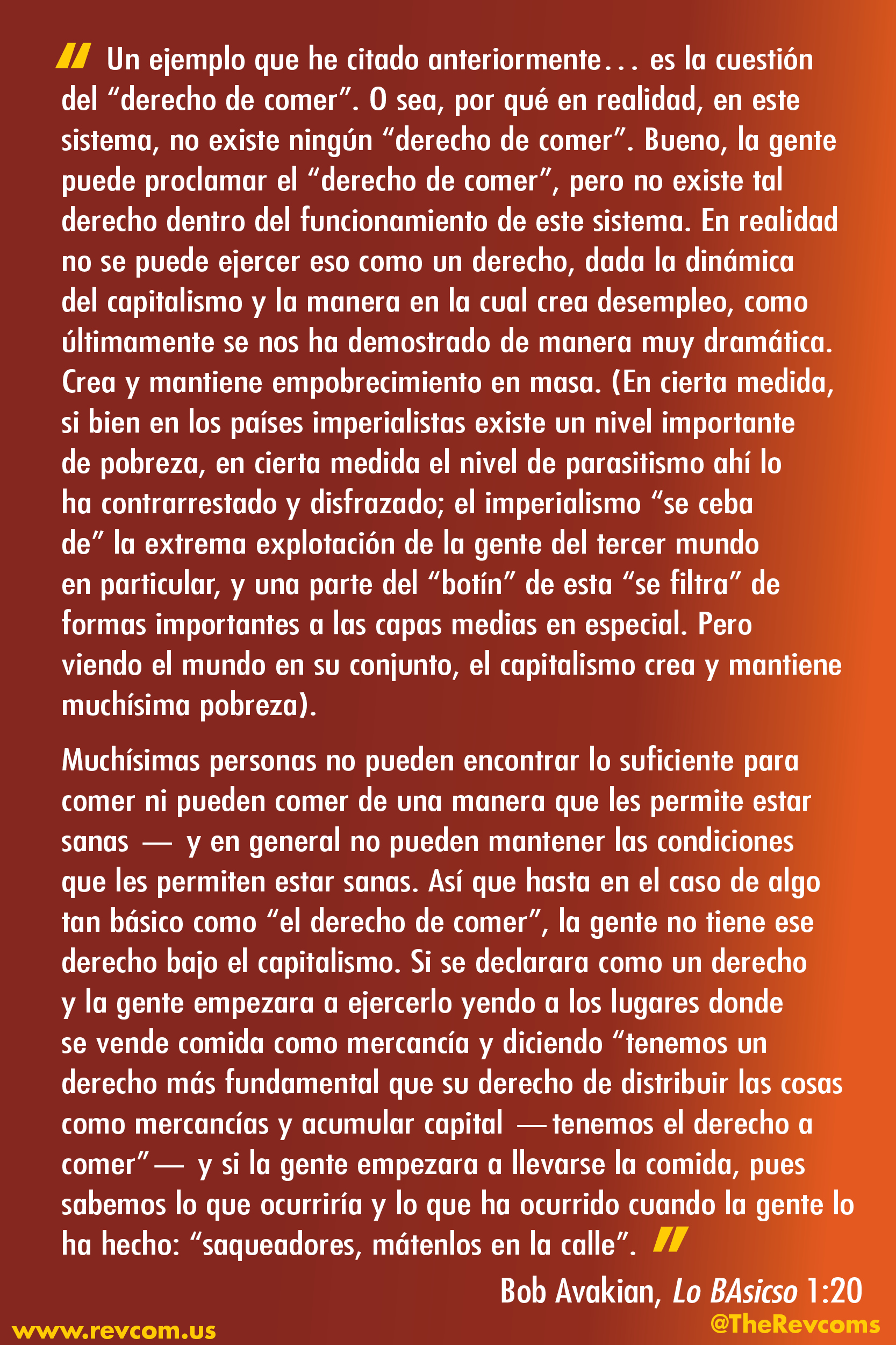 Es importante llevar este mensaje a las personas que ahora mismo están bajo fuego y traerlas a esta lucha. Se espera que el recorte de la ayuda de SNAP lleve a que muchas más personas vayan a los bancos de alimentos en todo el país. Animamos a las personas a salir a las filas en los bancos de alimentos, especialmente en los próximos días, con el llamamiento iniciado por Rechazar el Fascismo / RefuseFascism.org y abierto a todos, para una protesta decidida, no violenta y sostenida a partir del 5 de noviembre, destinada a expulsar a este régimen fascista del poder. Además, corre la voz sobre el líder revolucionario Bob Avakian que ha desarrollado el nuevo comunismo. Inscribe a la gente para seguirlo en Substack o Youtube, y distribuye su mensaje en las redes sociales REVOLUTION #141, ¡La hora ya nos está encima urgentemente — de expulsar al régimen fascista de Trump! Averigua lo que la gente piensa sobre toda esta situación y escribe a revolution.reports@yahoo.com sobre tu experiencia y lo que aprendas